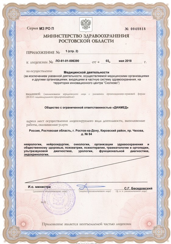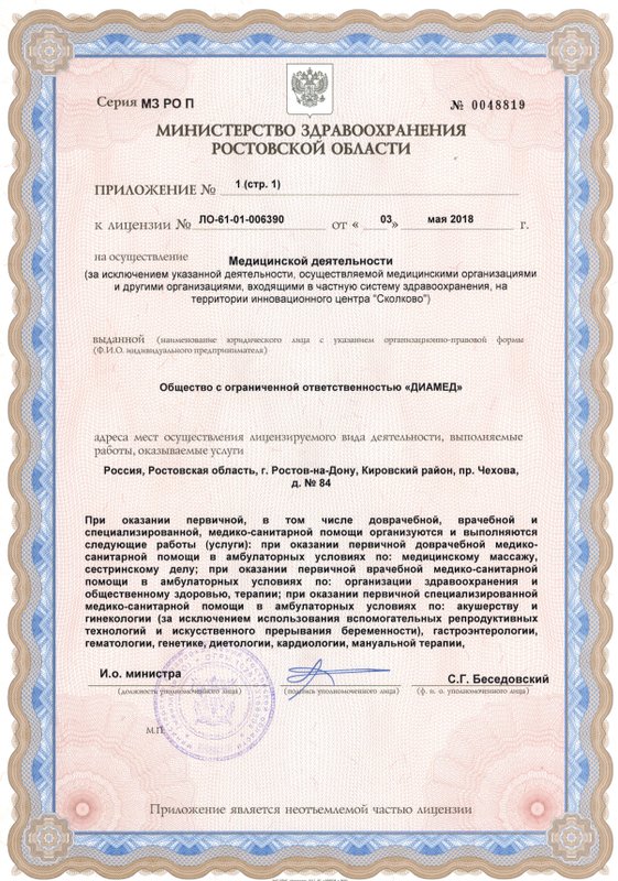 Медицинский центр Диамед - это учреждение широкого профиля, предлагающее специально подобранный комплекс услуг для каждого клиента. В работе клиники все построено с учетом максимального комфорта для посетителей. Техническое оснащение кабинетов позволяет провести диагностические исследования организма пациента для составления программы лечения и профилактических мероприятий. В клинике функционируют отделения психиатрии, общей терапии, кардиологии, гастроэнтерологии, аллергологии, иммунологии, гематологии, лечения инфекционных заболеваний, неврологии, эндокринологии, урологии, гинекологии, акушерства, маммологии, онкологии, психотерапии, ортопедии. Наши специалисты имеют высокую квалификацию и с пониманием отнесутся к вашим проблемам. Доверяя заботу о своем здоровье нам, вы можете быть уверены в результате. Также мы сможем помочь с подбором диеты.