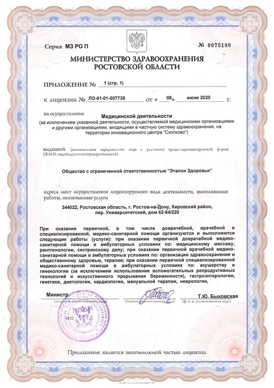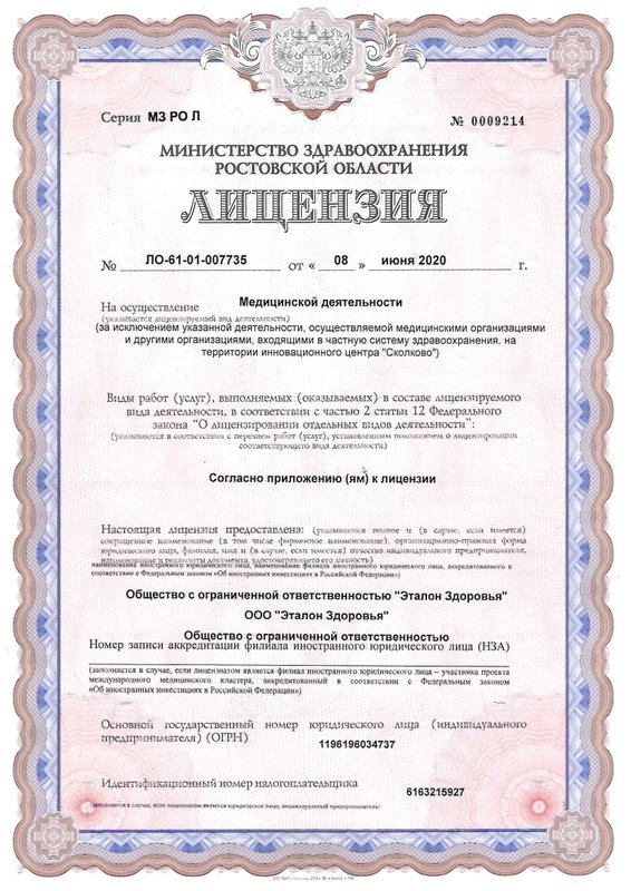 Медицинский центр Эталон Здоровья - это многопрофильное медицинское учреждение, предлагающее индивидуальный комплекс процедур для каждого клиента. Работа клиники организована с учетом комфортного пребывания посетителей. Оснащение центра помогает провести диагностику организма пациента для составления плана лечения и профилактики. В клинике открыты отделения общей терапии, кардиологии, ревматологии, гастроэнтерологии, аллергологии, иммунологии, гематологии, лечения инфекционных заболеваний, неврологии, эндокринологии, гинекологии, оториноларингологии, ортопедии. Наши врачи имеют соответствующие знания и внимательно отнесутся к каждой вашей просьбе. Доверяя свое здоровье нам, вы можете не сомневаться в положительном результате.